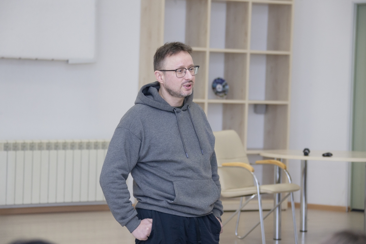 Студенты расспрашивали гостя о военной службе, и он с радостью делился своими историями. Диалог получился очень честным и оживлённым.