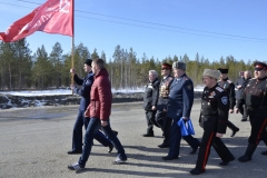В конце февраля в Воркуте стартовал автопробег «Наследники победителей». 17 марта копия Знамени Победы прибыла в Ухту. Кадет Степан Гульков, второкурсник Горно-нефтяного колледжа УГТУ, одним из первых прикоснулся к священному полотнищу.