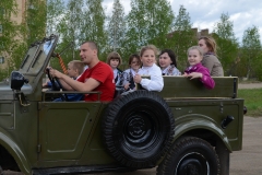 По установившейся традиции, знаменитые «ГАЗики» военных лет кружили по автодрому, приводя в восторг воспитанников школы-интерната № 2. На этот раз пятнадцать ребятишек из второго и третьего класса удобно рассадили по двум машинам и прокатили по полигону, заезжая иногда на эстакаду. Во время этой поездки юные пассажиры хором пели знаменитую «Катюшу» и «Нас не догонят».