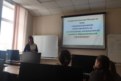 На эти и многие другие вопросы студенты первого курса направления подготовки «Документоведение и архивоведение» получили ответы в ходе профилактической беседы, проведенной преподавателями кафедры документоведения, истории и философии 20 апреля.