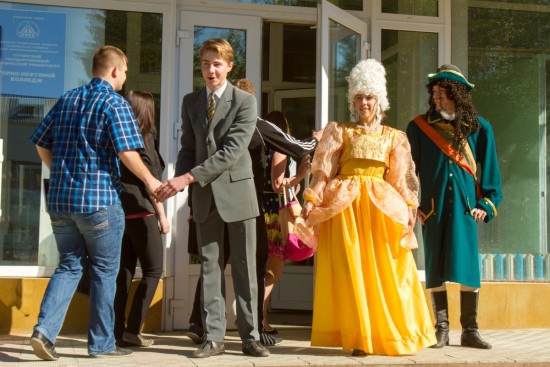 В мероприятии, которое прошло в учебном заведении 11 июня, студенты вошли в образы известных исторических личностей правителей Петра I, Екатерины II, первого Президента России Бориса Ельцина. От их лица они поздравили однокашников с праздником и провели в аудитории опрос на тему, как эти люди повлияли на ход российской и мировой истории, какими главными событиями было отмечено их правление.