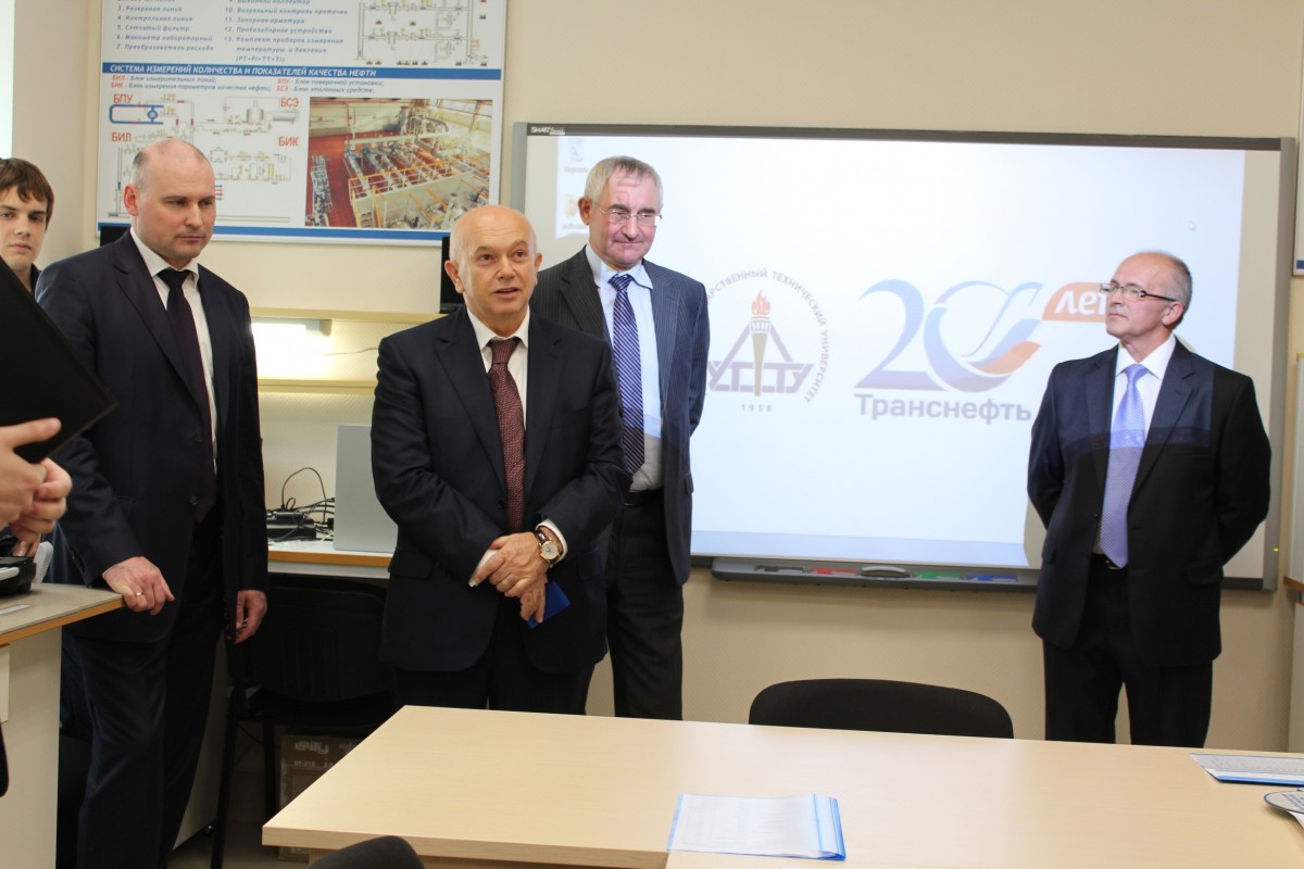 Новая именная аудитория ОАО «АК «Транснефть» — лаборатория метрологического обеспечения транспорта нефти и нефтепродуктов является десятой, юбилейной. Торжественно открыть аудиторию — разрезать ленту и вручить символический ключ от лаборатории предоставили возможность вице-президенту компании «Транснефть» Борису Королю и исполняющему обязанности ректора УГТУ Ярославу Цуневскому.