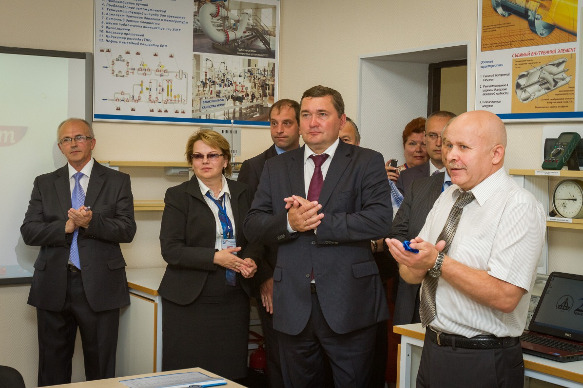 После торжественной части исполняющий обязанности главного метролога ОАО «СМН» Михаил Лежнин рассказал об актуальности лаборатории для учебного процесса и производства, а также о ее техническом наполнении. Новая лаборатория организована для изучения поверки и калибровки основных параметров технологических жидкостей — нефти и нефтепродуктов. Здесь на специальном оборудовании будут выполняться научно-методические работы по методам преподавания основных дисциплин по метрологии и метрологическому обеспечению производства, создание обучающих программ в 3D и оригинальных учебных методик на решение логических задач для студентов.