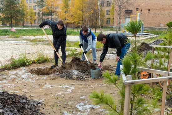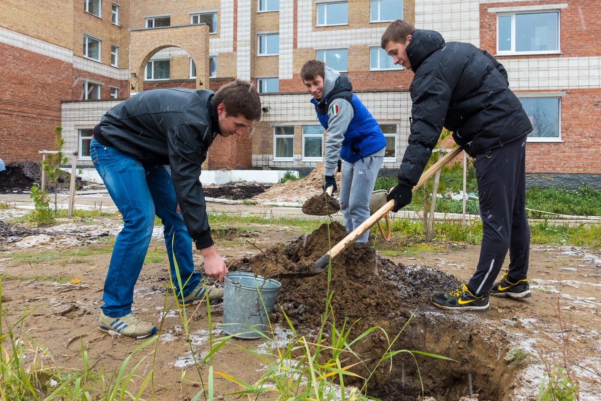 День студенческого городка прошел и в Горно-нефтяном колледже. Там ребята также занимались посадкой деревьев и благоустройством территории рядом с учебным заведением.
