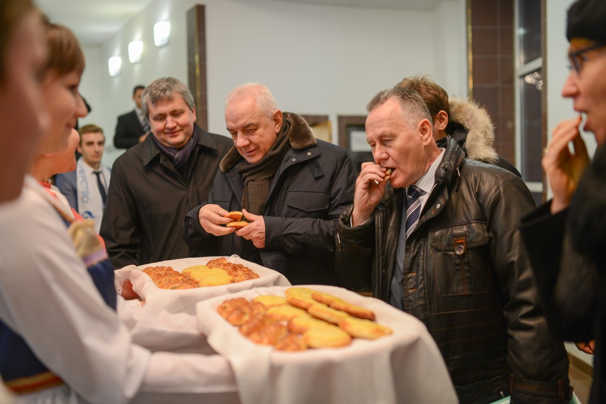 После экскурсии по «достопримечательностям» Сосногорского ЛПУМГ делегацию Газпрома торжественно встречали в университете. Отведав коми хлеба-соли, гости первым делом отправились в Музей истории УГТУ. С основными этапами становления Ухты как одного из центров промышленной добычи нефти и газа в России и как города с короткой по обычным меркам, но яркой и драматичной биографией их знакомил лично ректор УГТУ Николай Цхадая.