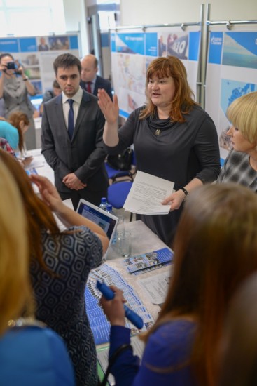Тем временем в стенах университета полным ходом шла ярмарка вакансий дочерних обществ ОАО «Газпром». В фойе перед конгресс-холлом представители семи предприятий (причем только три из них имели ухтинскую «прописку») предлагали студентам УГТУ уникальную возможность «из первых рук» узнать об особенностях и перспективах работы на том или ином предприятии. Каждый желающий мог прямо здесь определиться с местом будущей практики или узнать свои шансы на трудоустройство по окончании вуза.