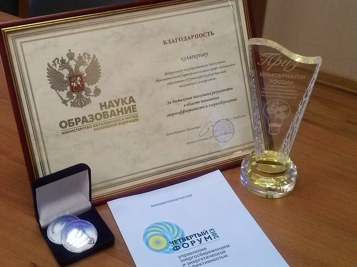 28 ноября 2013 года Ухтинский государственный технический университет принял участие в четвертом форуме по вопросам управления энергосбережением и энергетической эффективностью «Стандарты энергоэффективности: организации образования и науки», в рамках которого УГТУ был награжден призом и благодарностью Минобрнауки России за достижения в области повышения энергоэффективности и энергосбережения.