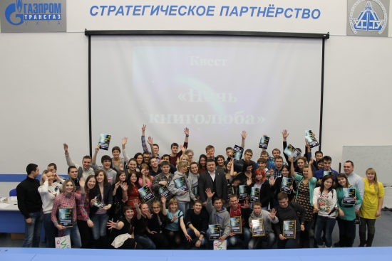 Впервые в своей истории ухтинский вуз распахнул свои двери не днем, как это обычно бывает, а ночью. Открытие мероприятия «Ночь книголюба» состоялось около одиннадцати часов вечера: когда свет в окнах домов один за другим выключался, в корпусе «Л» УГТУ напротив зажигались лампы в аудиториях. Ночное культурное мероприятие проходило в форме квеста. Участники, объединившись в команды, должны были выполнять задания, посвященные русской и зарубежной детской, классической и современной литературе по определенным станциям (их было десять) и трем уровням сложности. В квесте приняли участие тринадцать команд.