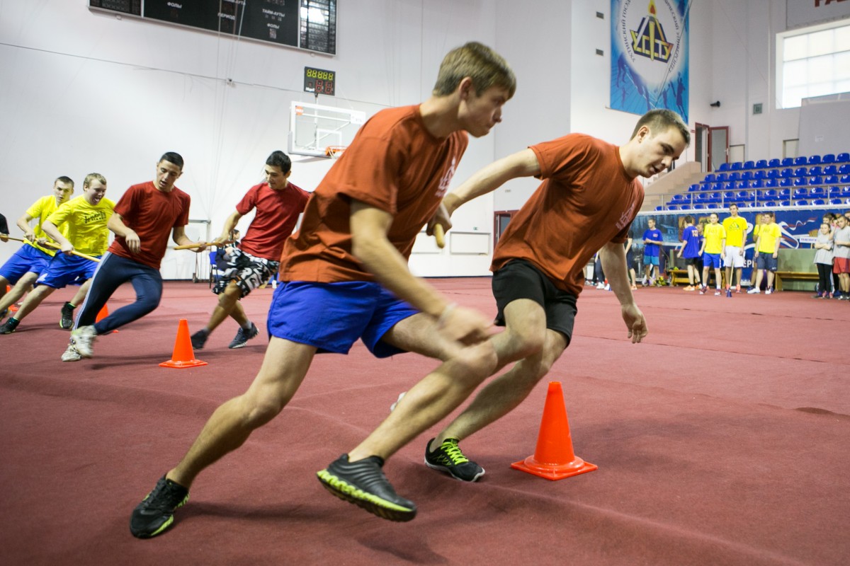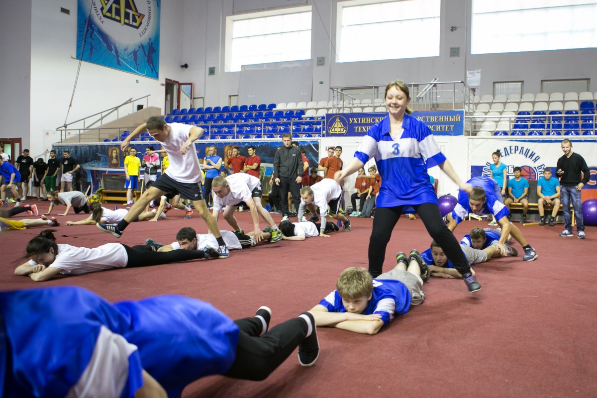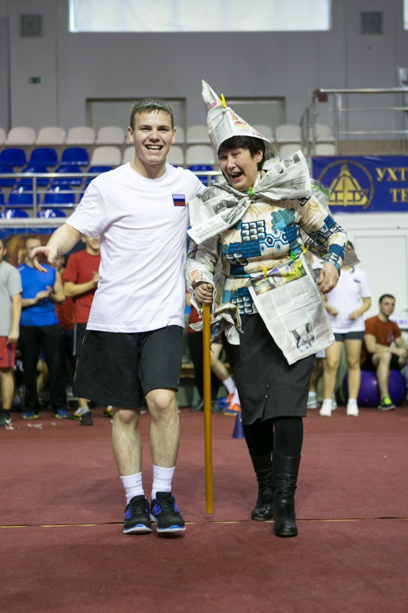 «Веселые старты» не давали зрителям даже малейшей передышки — трибуны неистовствовали. Игроки соревновались в конкурсах «каракатица», «живая веревка», устраивали бег спиной вперед, несли на палках надувной мяч и весело играли в чехарду, украшая друг друга синяками, лихо катали девчонок на гимнастической палке и валились без сил на пол. Отдышавшись под зажигательные песни солисток УГТУ, команды вновь ринулись в спортивный бой.