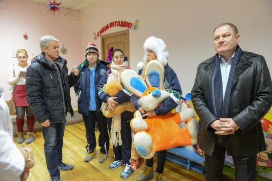 В предпоследний день уходящего года гости передали Дому ребенка развивающие игры, постеры для игровых и спален, куклы, информационные стенды, памперсы и др. Хоккеистки Кристина Варламова, Дарья Мелехина и Анна Башлыкова подарили большие мягкие игрушки.