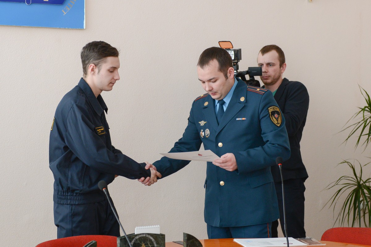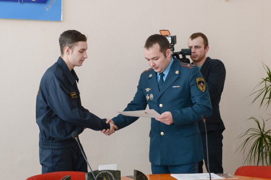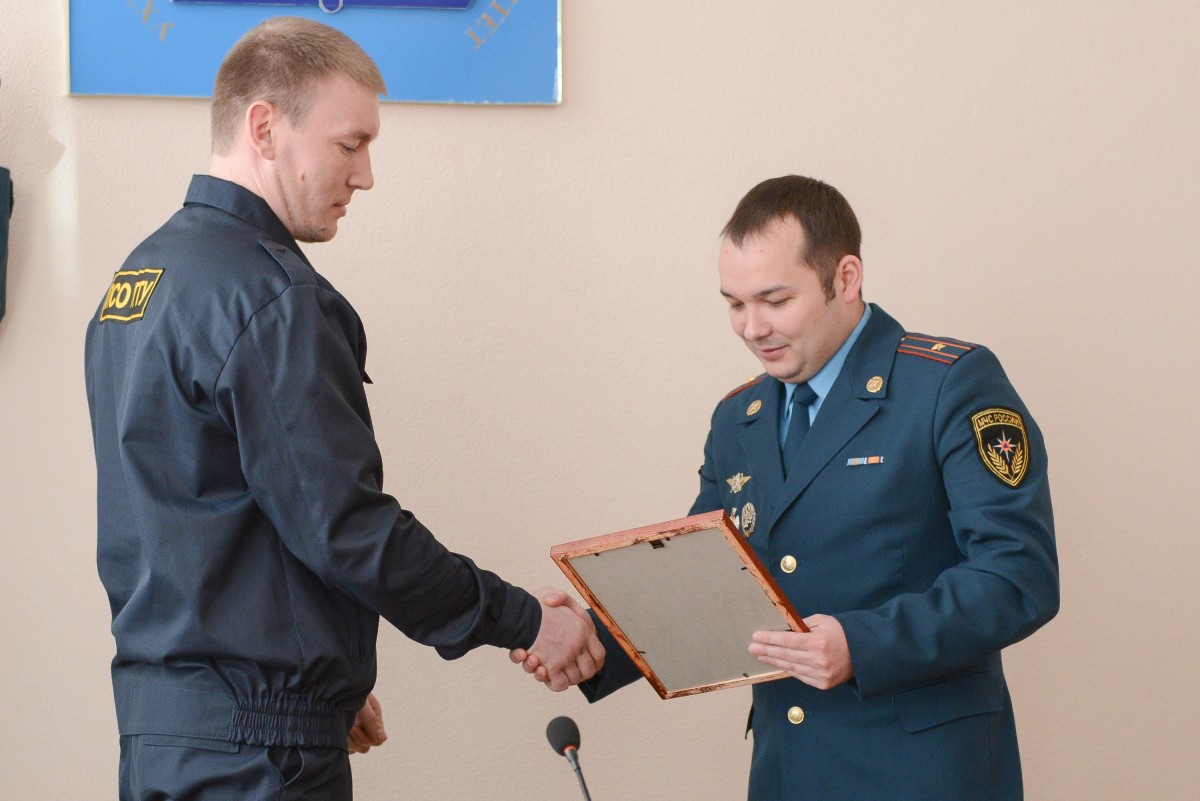 Сертификаты новобранцам, успешно прошедшим все тесты, вручал и.о. начальника 2-го отряда Федеральной противопожарной службы Управления МЧС по Республике Коми майор внутренней службы Ефим Ефимов. Также он поздравил команду ухтинских кадетов с успешным участием в соревнованиях на звание лучшей команды Управления МЧС по РК по проведению аварийно-спасательных работ при ликвидации ЧС на автомобильном транспорте. Бойцы ПСО УГТУ показали третий результат среди 11 профессиональных команд МЧС, хотя на подготовку им отпустили всего неделю. Заслуженную награду и признание профессионалов от лица всех своих подчиненных получил командир ПСО Леонид Красноперов.