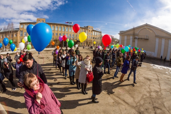 12 апреля на площади перед главным корпусом Ухтинского государственного технического университета состоялся флешмоб, приуроченный к празднованию 55-летия первого полета человека в космос.