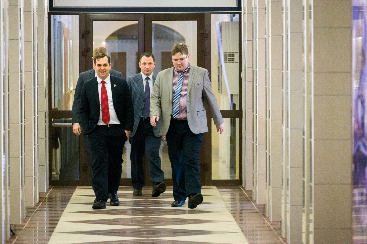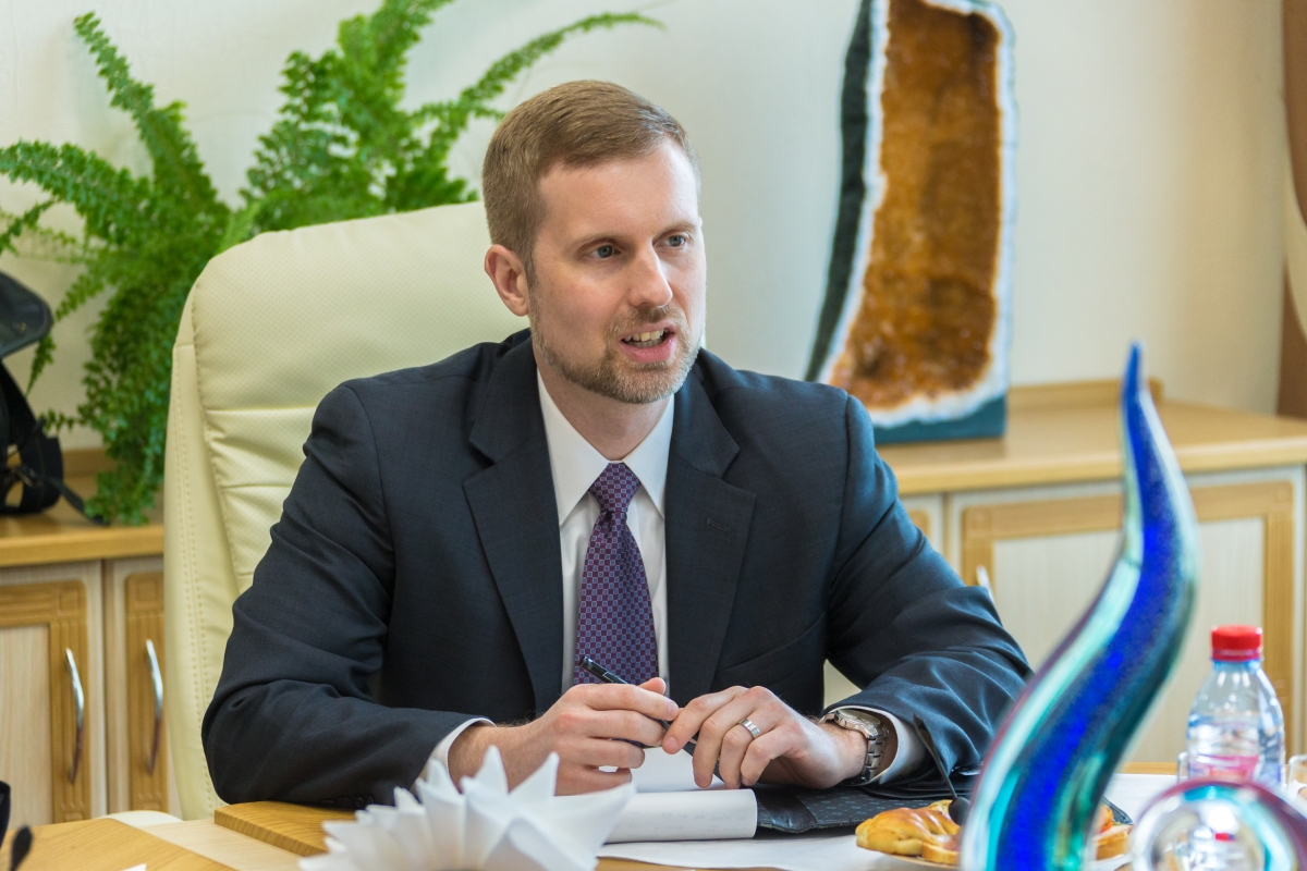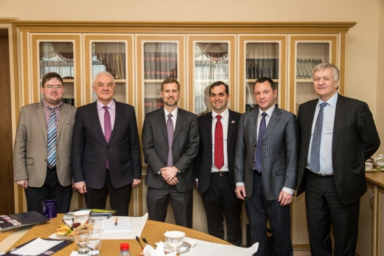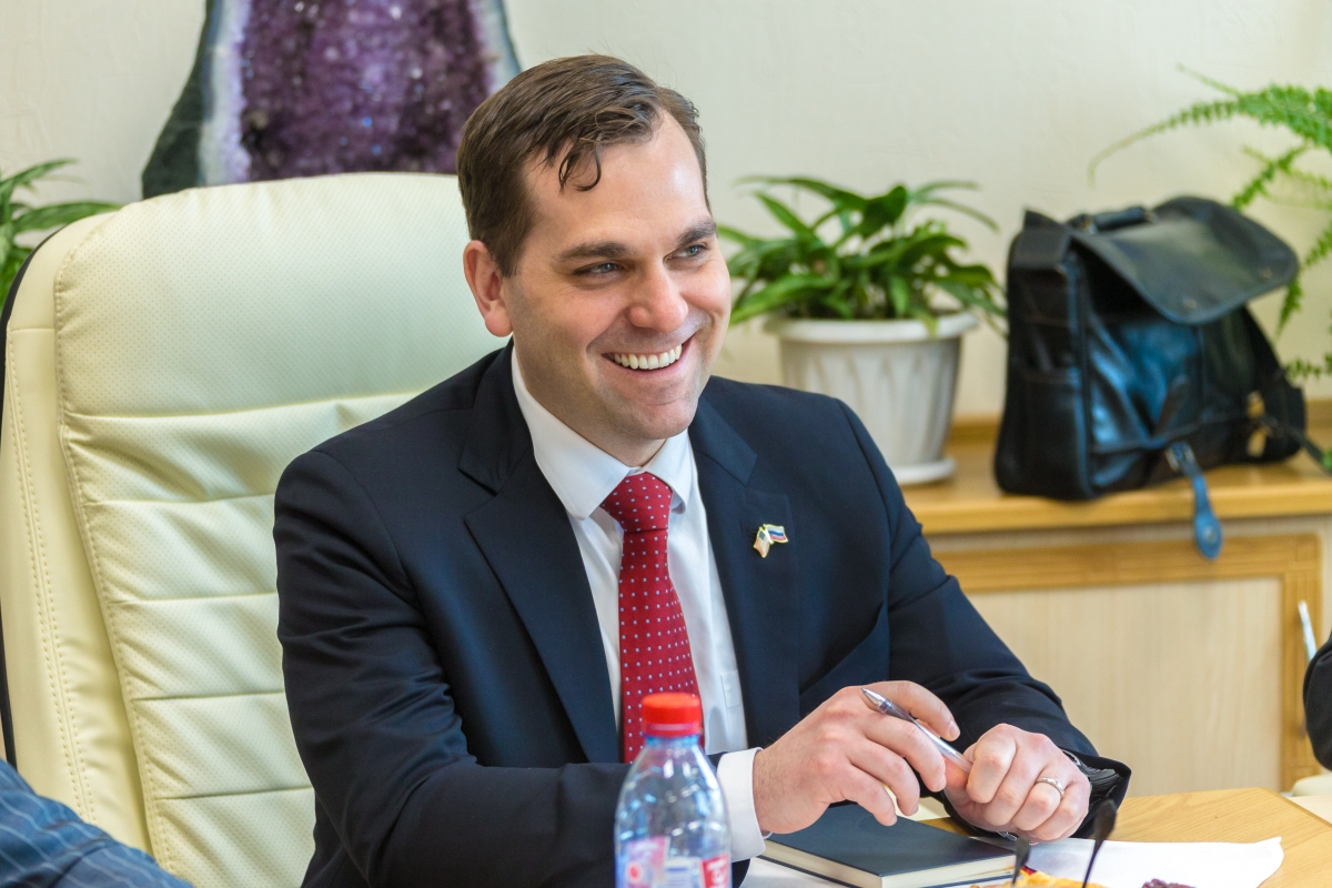 Рабочий визит в ухтинский вуз завершился деловой встречей с ректором университета, профессором Николаем Цхадая и заместителем Председателя Правительства Республики Коми – министром промышленности, природных ресурсов, энергетики и транспорта региона Николаем Герасимовым. В ходе встречи стороны обменялись мнениями и предложениями по перспективам взаимодействия в образовательной, научной, энергетической сферах, а также по вопросам спортивной дипломатии.