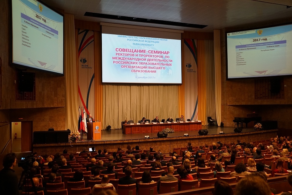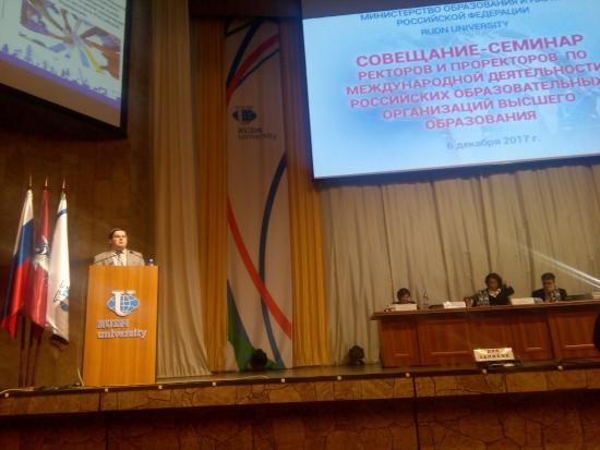 6 декабря в РУДН состоялось совещание-семинар ректоров и проректоров по международной деятельности, организованное Минобрнауки России. Ухтинский университет представляли проректор по внешним связям Георгий Коршунов и начальник международного отдела Антон Григорьев.
