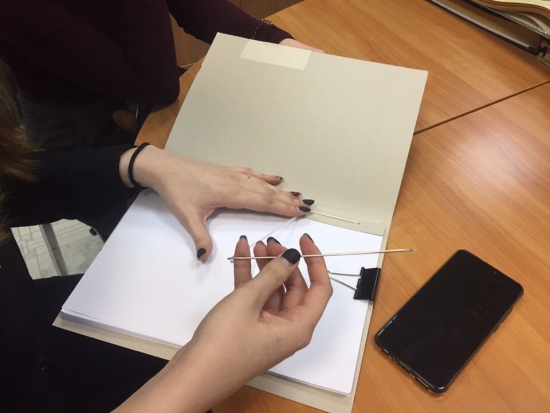 Визит в архив стал для студентов и хорошим практическим занятием. Архивариусы продемонстрировали, как обрабатывают современные документы и как формируют архивные дела. Дали попробовать будущим документоведам самостоятельно подшить бумаги особой важности, после чего показали, где их хранить.