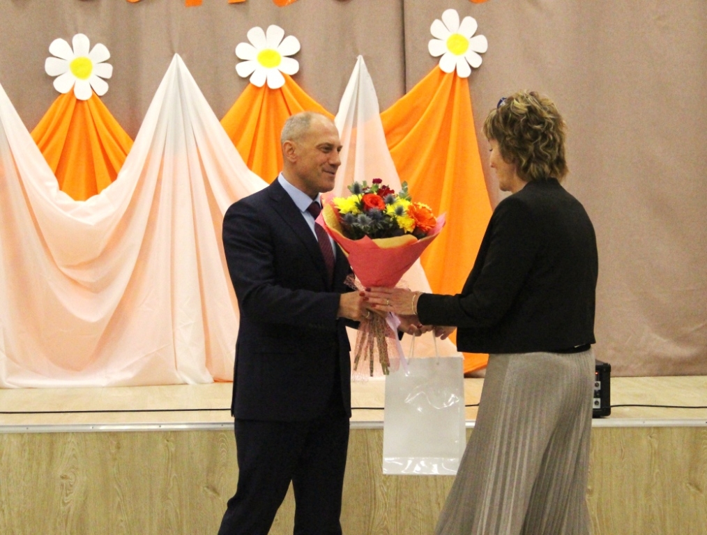 - Сегодня мы отмечаем День учителя. Сердечно поздравляем всех педагогов с этим прекрасным праздником. Учитель - это не просто профессия, это судьба, это призвание, - подчеркнул Николай Юрьевич. - Мы уже выросли, но всегда вспоминаем своих учителей. Особенно самого первого. Ведь это он учит тебя читать, писать, и с первых шагов в жизни помогает стать настоящим человеком. Желаем всем учителям счастья, здоровья, благополучия! Низкий Вам поклон! Спасибо за Ваш труд!