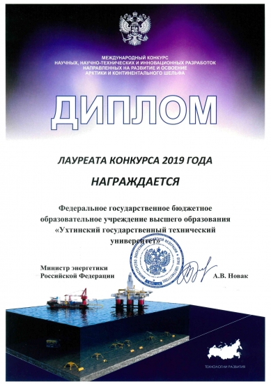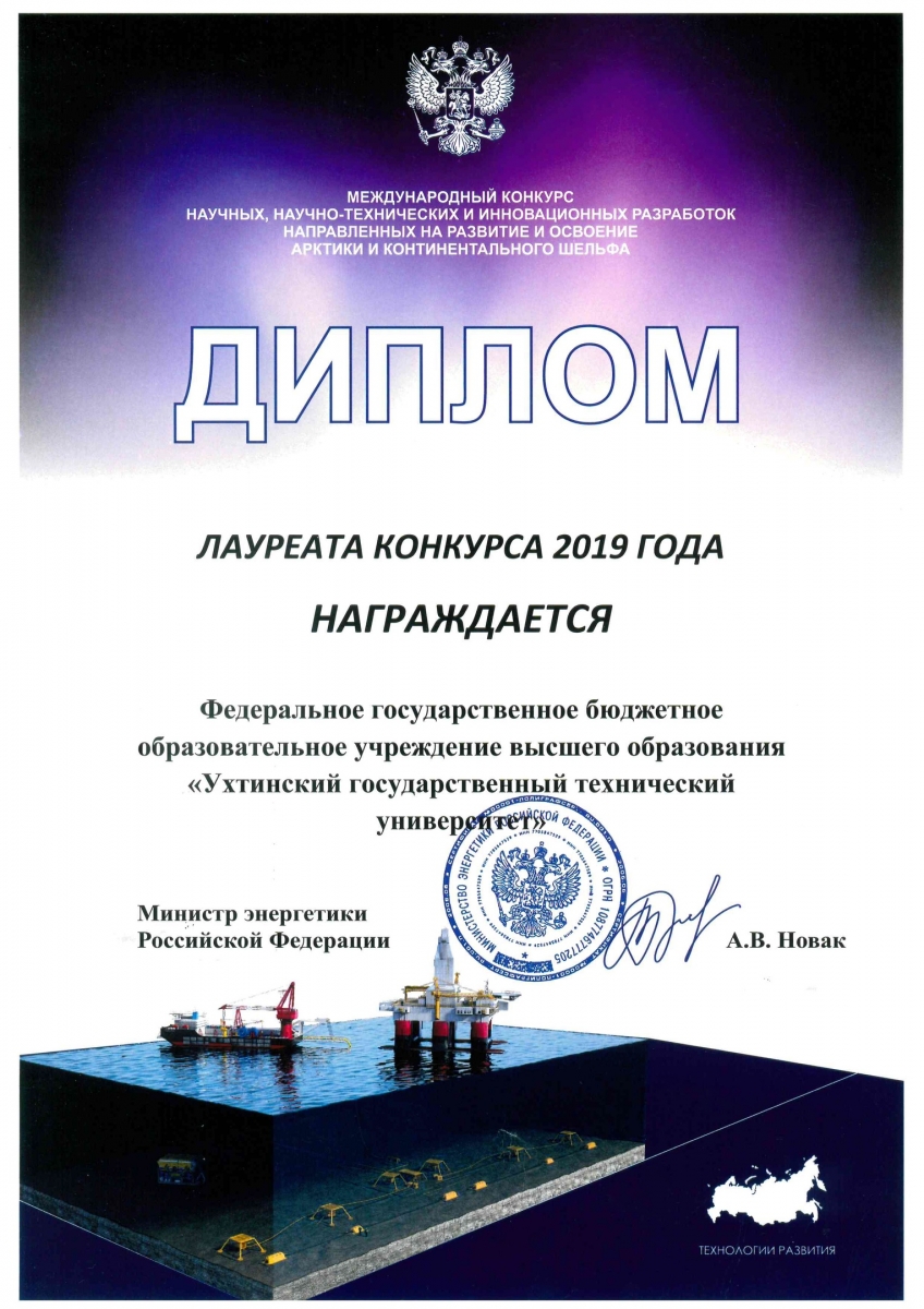 Дипломами лауреатов конкурса за подписью министра энергетики РФ А.В. Новака удостоены ФГБОУ ВО УГТУ и лично Р. В. Агиней.