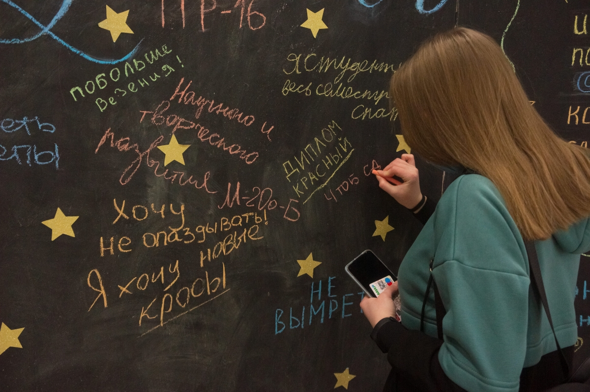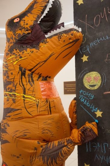 Также в течение дня была возможность оставить пожелание на "Доске желаний студента", рядом с которой студентов ждал неутомимый динозавр и фотосессия с ним. Все могли получить вкусные призы и фирменные стикеры факультета.