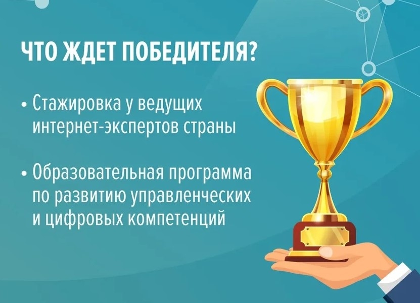 Участники, показавшие лучшие результаты, будут приглашены в очные этапы. В полуфиналах и финале компетенции конкурсантов будут очно оценивать эксперты и профессионалы в этой сфере. Победители получат возможность участвовать в образовательной программе по повышению управленческих и цифровых компетенций, а также смогут поучиться у наставников из числа ведущих интернет-экспертов.