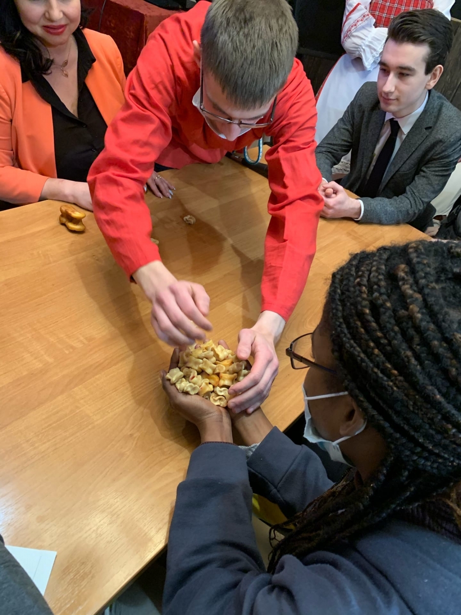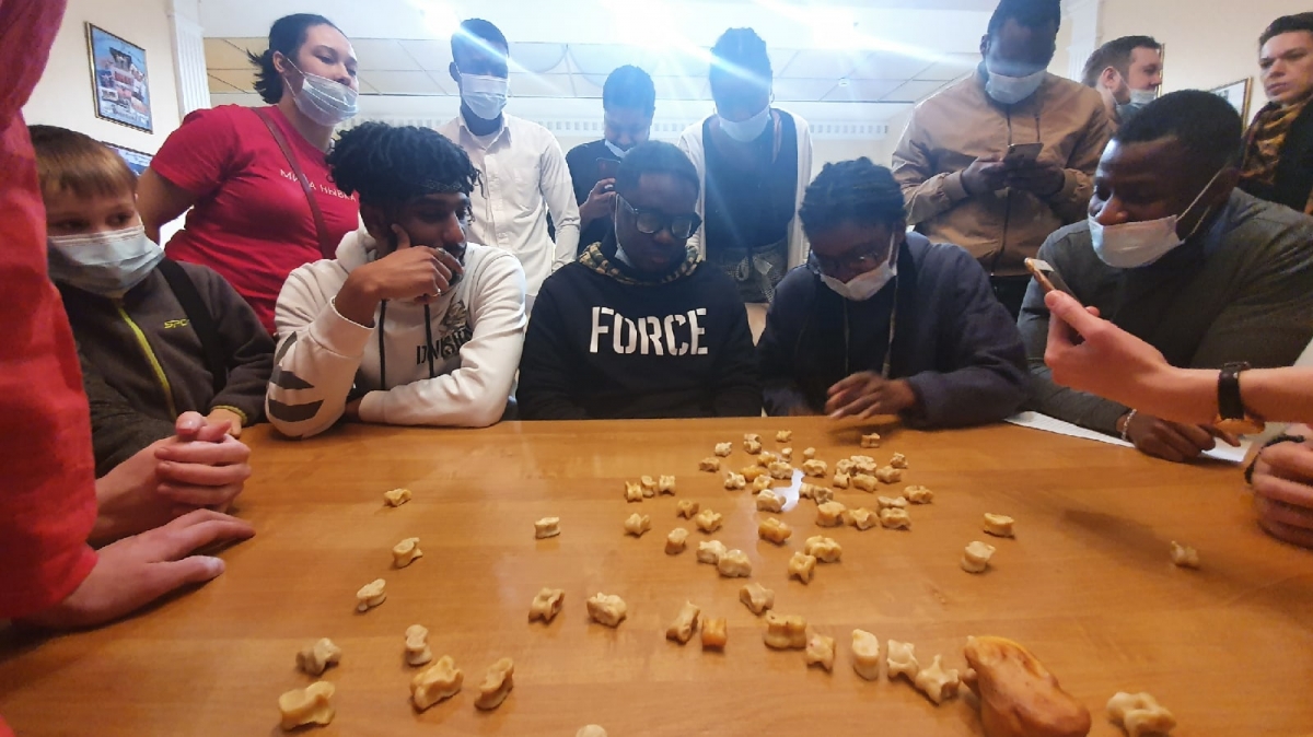 Деятельное участие в организации и проведении встречи принял студент первого курса специальности «Горное дело» НГФ УГТУ Антон Терентьев. Антон родом из Ижемского района, с бытом и традициями своего народа он знаком с детства, прекрасно владеет Коми языком и с годами его интерес к национальной культуре только крепнет: юноша намерен принять участие в Республиканском конкурсе «Пера-богатырь», где ему предстоит творческая самопрезентация и представление на суд публики и жюри собственного культурного проекта. А пока Антон, как минимум, вошел в историю УГТУ как первый организатор международного турнира по игре в Шег – традиционную национальную игру, связанную с бросанием костей и развивающую сообразительность, ловкость и внимание. Иностранные студенты с большим азартом подключились к забаве, причем многие из них отметили, что очень похожие виды настольных игр существуют и в традициях их родных стран.