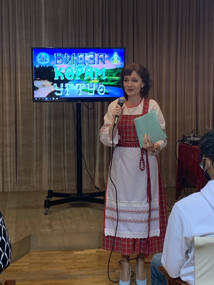 Погружение в национальную атмосферу, надо сказать, удалось на славу. Председатель ухтинского представительства МОД «Коми войтыр», главный эксперт Управления культуры администрации г. Ухты Светлана Буторина рассказала о главной общественной организации Коми, которая, к слову, является ровесницей самой республики и ежегодно проводит конференции Коми народа. Ее коллега, член президиума УП МОД «Коми войтыр», специалист Центра Коми культуры г. Ухты Наталия Чувьюрова предложила ребятам стать участниками живого диалога на Коми языке.