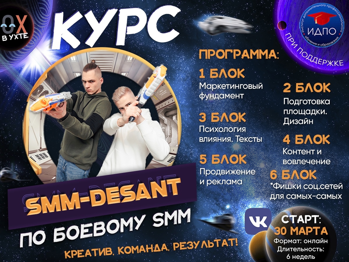 Вы давно хотели освоить навык боевого продвижения бизнеса в соцсети «Вконтакте»? Стать востребованным специалистом и иметь возможность совмещать интересную работу с учебой? Тогда курс SMM-ДЕСАНТ - это то, что вам нужно!