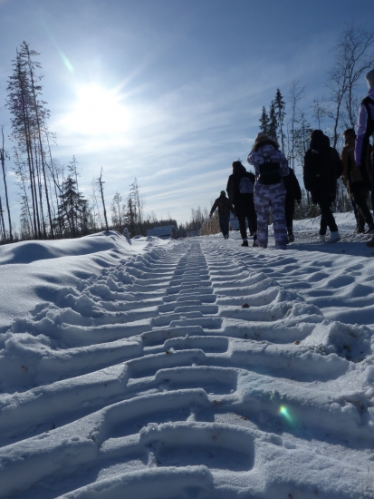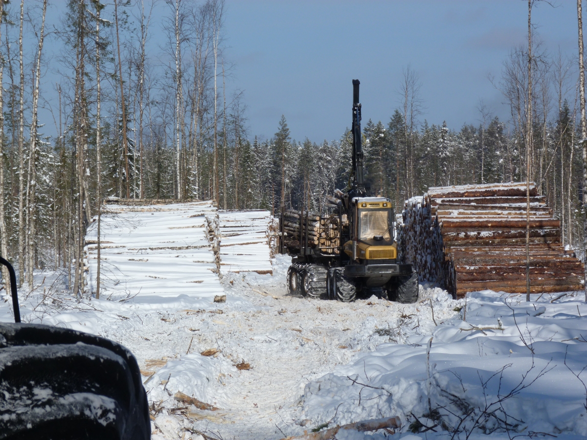 Первое, на что мы обратили внимание, это «чистота» делянки, хорошее состояние магистрали и волоков – сказывается время года и сильные морозы, благодаря которым колея от тяжелой техники практически не образуется.