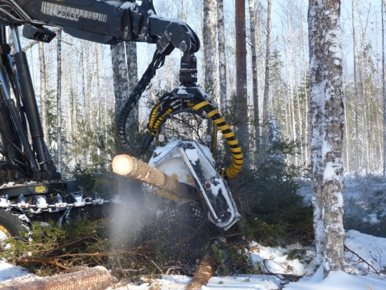 Обработка дерева производится непосредственно перед машиной: это необходимо для того, чтобы порубочные остатки укладывались на пути следования машины, что позволяет повысить проходимость техники и уменьшить ее негативное воздействие на грунты.