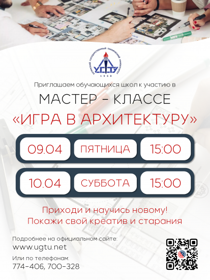 Кафедра архитектуры и строительства УГТУ приглашает школьников на мастер-класс «Игра в архитектуру»!