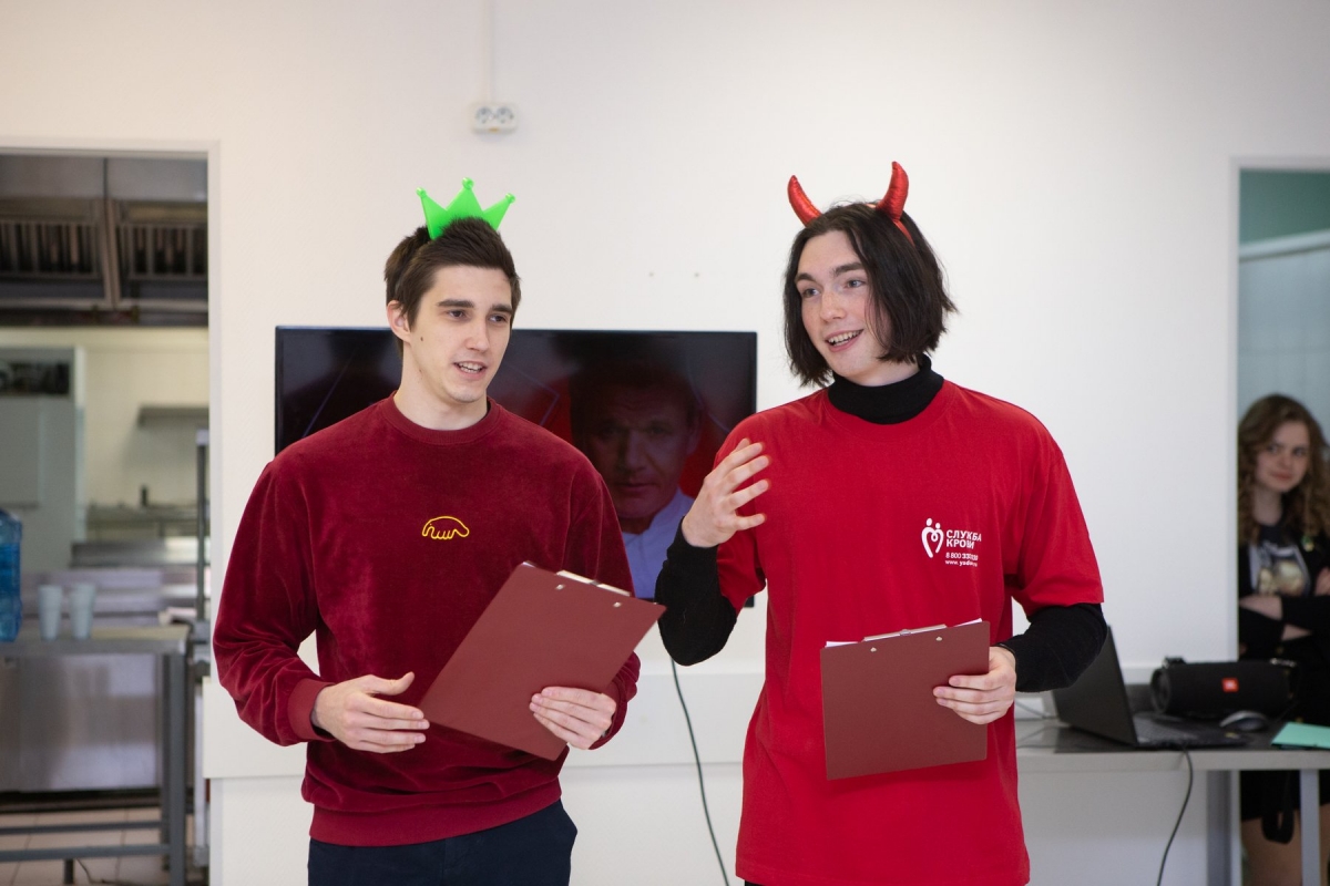22 апреля на базе бизнес-инкубатора УГТУ работала «Адская кухня». Команды готовили ужин, состоящий из второго блюда и салата. Время было ограничено: давалось полтора часа. Во время приготовления «гастрономических шедевров» каждая команда получила один случайный ингредиент, который нужно было включить в блюдо и обыграть его так, чтобы он был не лишним.