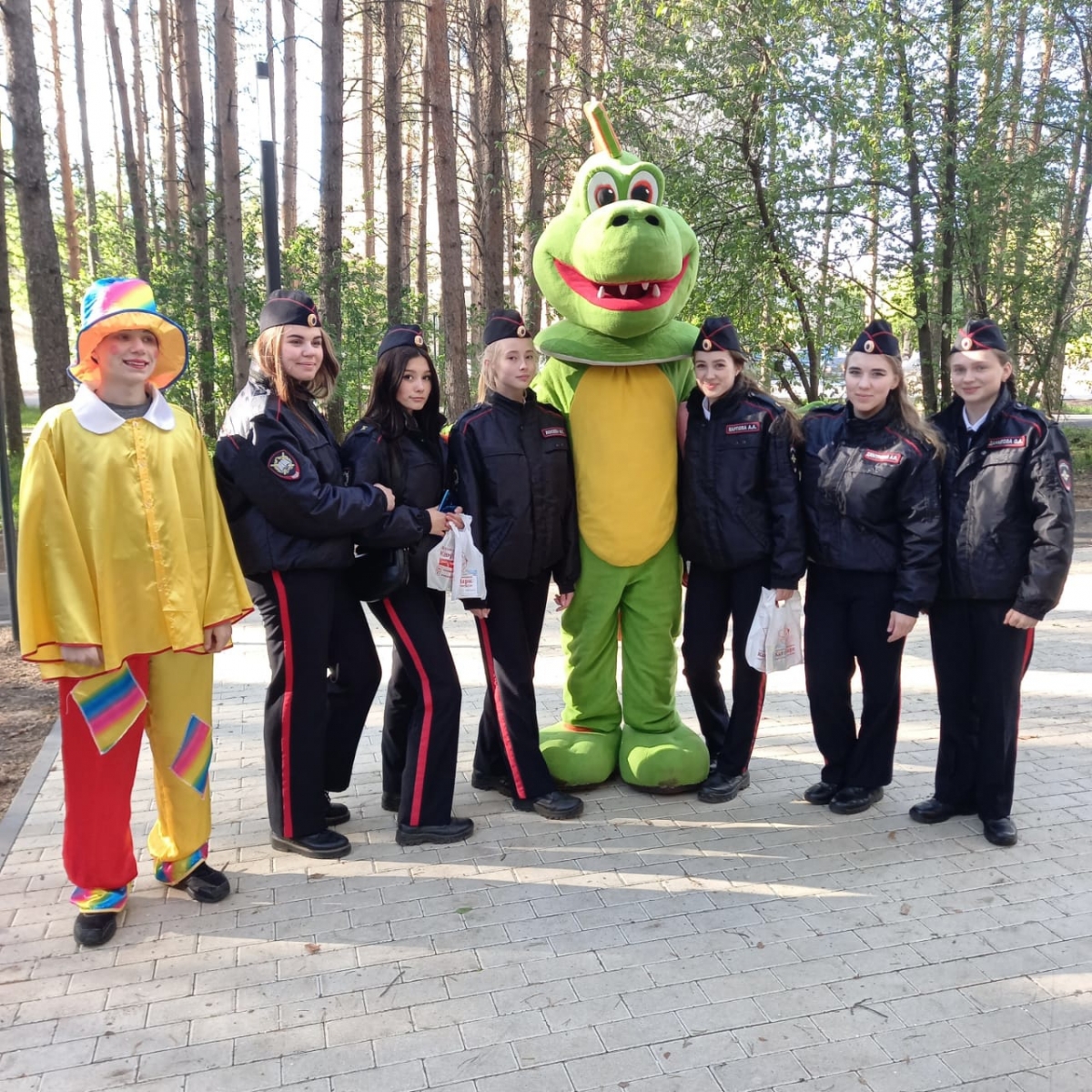 Праздник добрых дел продолжился непосредственно на улицах города, где одетые в парадную форму кадеты, сопровождаемые забавными сказочными персонажами, дарили малышам воздушные шары и сувениры.