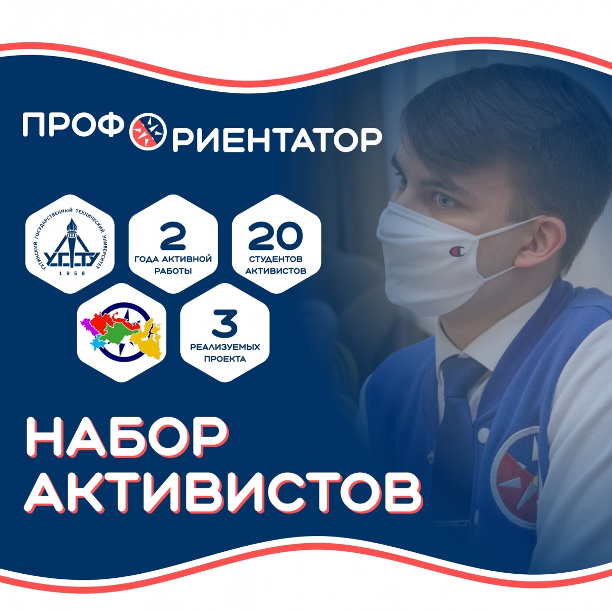 Студенческое объединение "Профориентатор УГТУ" объявляет набор активистов. Если ты активный, общительный, хочешь развиваться и учиться новому - присоединяйся! В рядах "Профориентатора" тебя ждут: