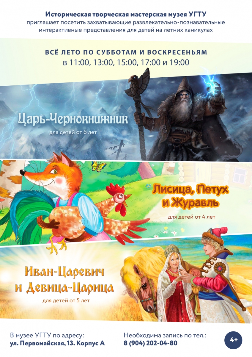 Все лето по субботам и воскресеньям историческая творческая мастерская музея УГТУ проводит представления для детей! Ребят ждут развлекательно-познавательные интерактивные программы: