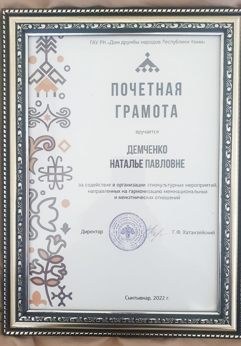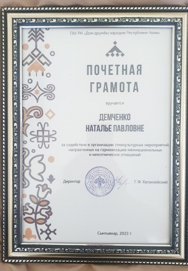 В этот день почётной грамотой наградили декана нефтегазового факультета Наталью Демченко за содействие в организации этнокультурных мероприятий, направленных на гармонизацию межнациональных и межэтнических отношений.