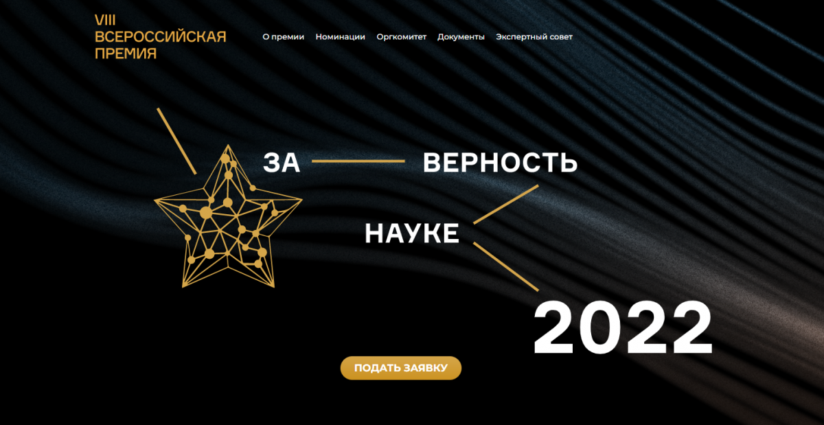 Открыт прием заявок на VIII Всероссийскую премию «За верность науке». Он продлится до 3 октября 2022 года на сайте https://zavernostnauke.ru. В 2022 году Премия включит 14 номинаций: