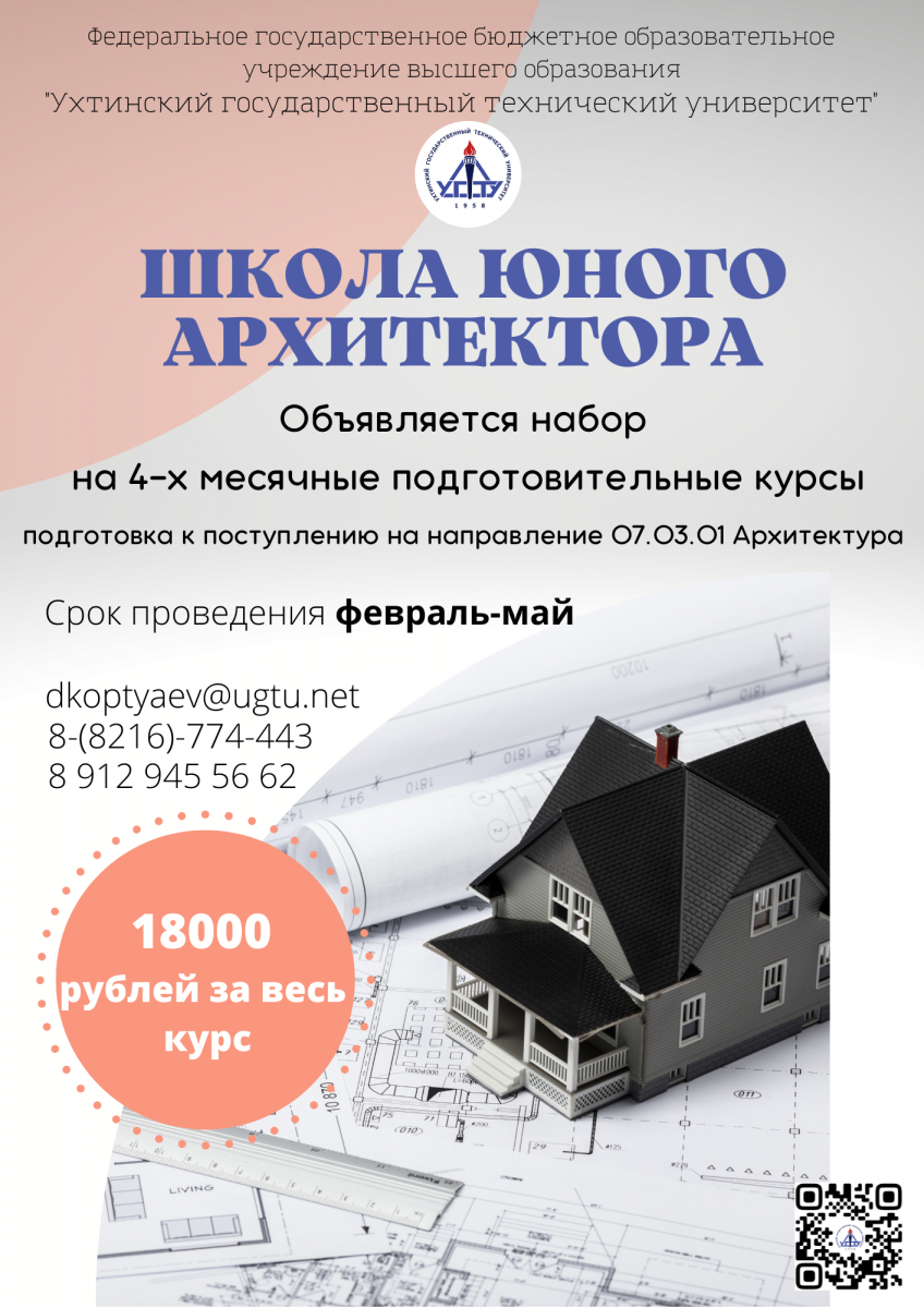 Ухтинский университет объявляет набор на 4-месячные подготовительные курсы «Школа юного архитектора»! Занятия проводятся с февраля по май и включают в себя подготовку по черчению, рисунку и композиции.