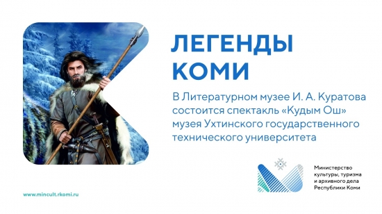 22 февраля в 16.00 в Литературном музее И. А. Куратова (г. Сыктывкар) состоится спектакль «Кудым Ош» музея Ухтинского государственного технического университета. Сюжет спектакля в исполнении участников Исторической творческой мастерской музея – это адаптация одной из известных коми-пермяцких легенд, погружающая в атмосферу таинственного и волшебного Севера.