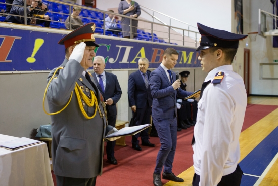 - Мы очень гордимся вами и возлагаем на вас огромные надежды, - заметил проректор по безопасности и общим вопросам УГТУ Владимир Якимов. - Очевидно, что молодые люди, стремящиеся на государственном уровне защищать закон и правопорядок, обладают рядом особенных качеств. Я говорю о целеустремленности, гражданской ответственности, патриотизме, высокой принципиальности, дисциплине, физической и нравственной культуре. Но сегодня действительно особенный день: вы подтвердили и оправдали свое благородное намерение служить людям! Я желаю вам огромной удачи и всевозможных благих дел на этом поприще! Впереди у вас большой и славный путь служения высокой цели: охране правопорядка и защите интересов граждан. Заявите о себе добрыми и полезными для Отечества делами! Служите примером для сверстников и подрастающего поколения! В добрый путь, выпускники!