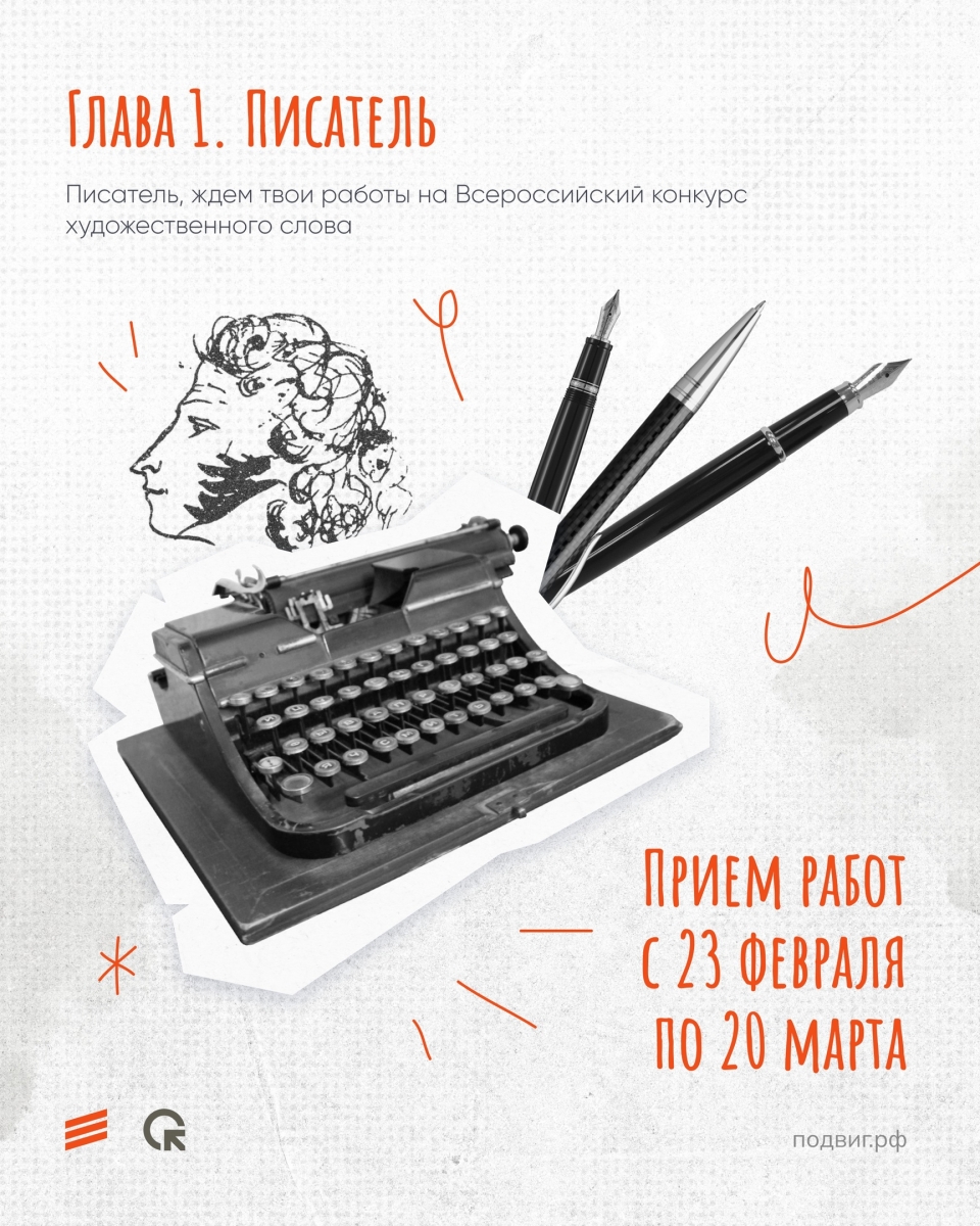 Писатель? Или мечтаешь им стать? Участвуй в конкурсе и получи контракт на 20 000 рублей! Присылай художественный рассказ о подвиге героя XXI века в рамках конкурса «Писатель», направленного на сохранение исторической памяти.