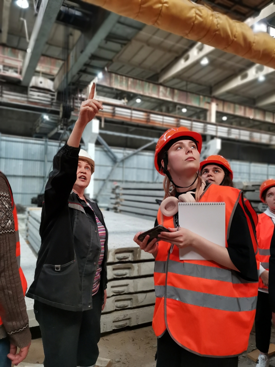 Первым пунктом назначения стал жилой комплекс «Урман» в Орбите, где ведётся строительство трёх многоквартирных домов. Гостям рассказали об этапах строительства, упомянули нюансы и сложности, которые могут встречаться во время возведения дома. Студенты активно задавали вопросы, записывали ответы и не уставали фотографировать происходящее.
