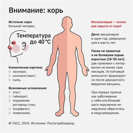 Корь – острое и очень заразное инфекционное заболевание, протекающее при высокой температуре (до 40,5 °C), воспалении оболочек полости рта и верхних дыхательных путей, с сопутствующей кожной сыпью и общей интоксикацией.