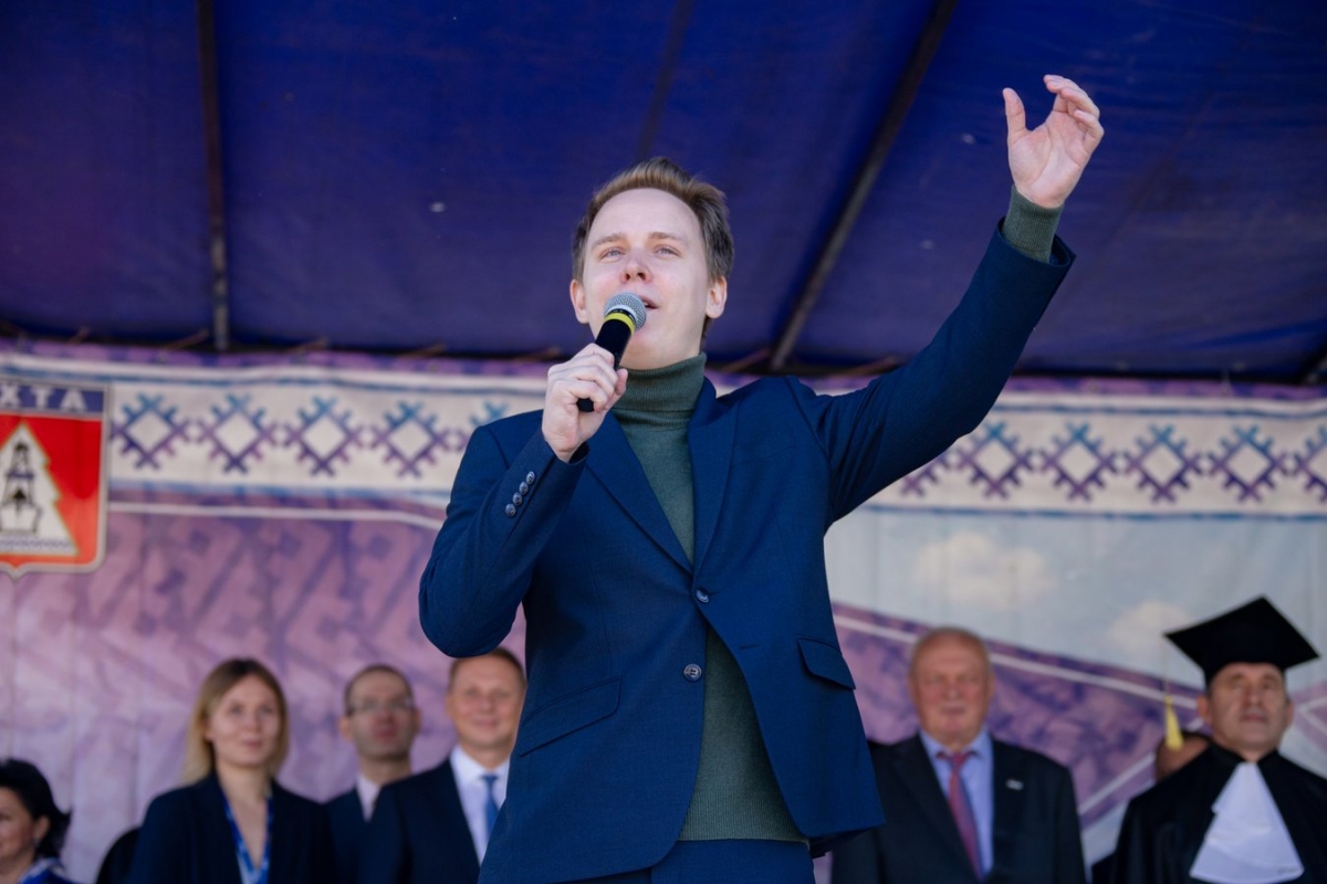 «Сегодня вы вливаетесь в нашу многотысячную университетскую семью, и я верю, что теперь этот праздник обретет для вас новое звучание. Он знаменует начало вашего сознательного профессионального пути, и я от всей души поздравляю вас с тем, что этот путь вы начинаете в Ухтинском государственном техническом университете!» - поздравил новоиспеченных студентов ректор УГТУ, профессор Руслан Агиней.