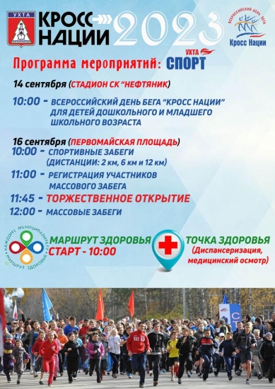 В субботу, 16 сентября, состоится традиционное спортивное мероприятие – Всероссийский день бега «Кросс Нации - 2023». Старт в 10:00. Встречаемся на Первомайской площади!