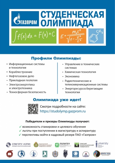 Мы рады сообщить об открытии регистрации на студенческую олимпиаду «Газпром» 2023/2024 гг.