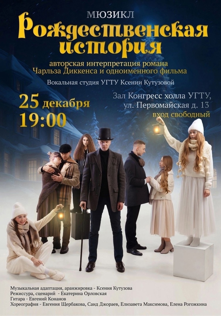 Встречайте: 25 декабря в 19:00 в конгресс-холле УГТУ уникальный мюзикл «Рождественская история» (авторская интерпретация романа Чарльза Диккенса и одноименного фильма)! Вокальная студия УГТУ, студенты и выпускники ухтинского вуза при поддержке танцевальных коллективов «RAINBOW», «United Bit», «Дуэт» совсем скоро соберутся вместе, чтобы подарить вам яркие эмоции.