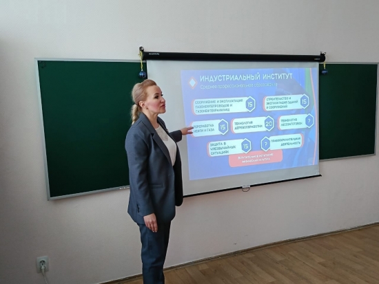 О поступлении в Ухтинский университет на направления подготовки высшего и среднего профессионального образования старшеклассникам школы № 4 рассказала старший преподаватель кафедры документоведения, истории и философии Анна Дроздова. Учащиеся активно задавали делегату от УГТУ дополнительные вопросы.