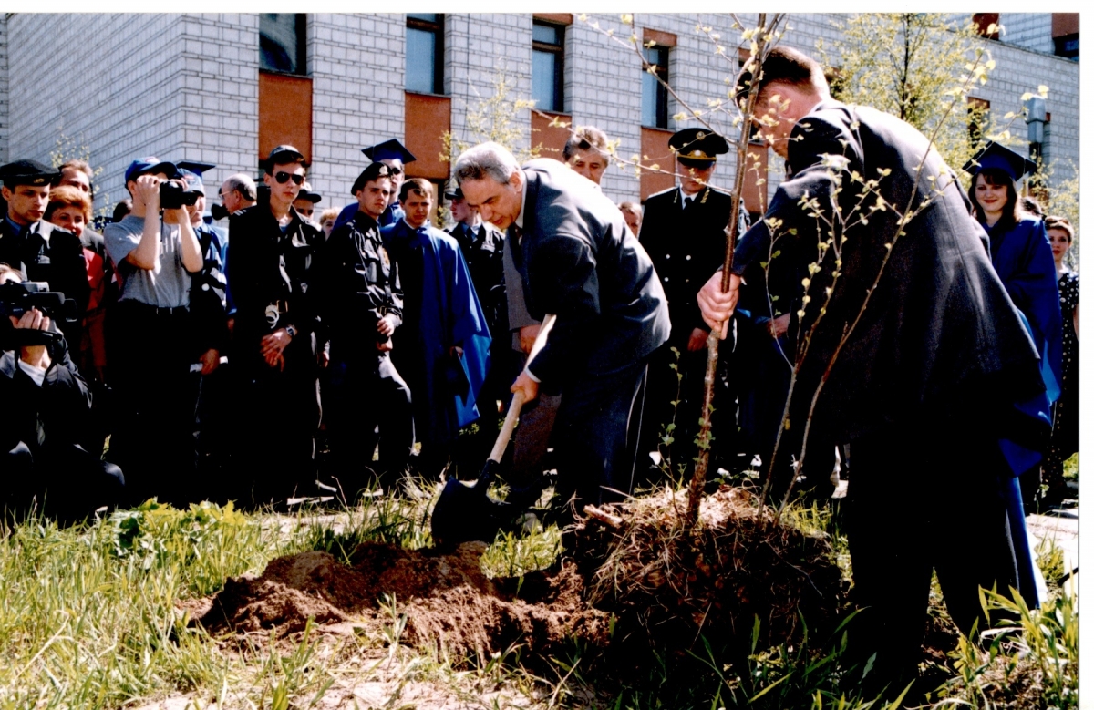 А тогда, 25 лет назад, обладатели университетских дипломов еще и посадили деревья в память о первом выпуске УГТУ - это аллея выпускников возле корпуса «Л». В закладке аллеи принимал участие первый Глава Республики Коми Юрий Алексеевич Спиридонов.