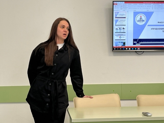 На встрече гостям рассказали о том, что факультет состоит из четырёх кафедр: кафедры экономики, управления и рекламы, кафедры вычислительной техники, информационных систем и технологий, кафедра документоведения, истории и философии и кафедра физической культуры, которая не является выпускающей.