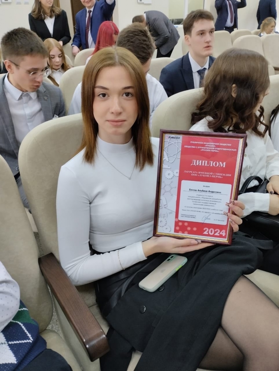 Студентам, получившим единовременную выплату от Общества в 2023 году, были вручены дипломы лауреата именной стипендии ООО «ЛУКОЙЛ-Пермь» и корпоративные подарки.