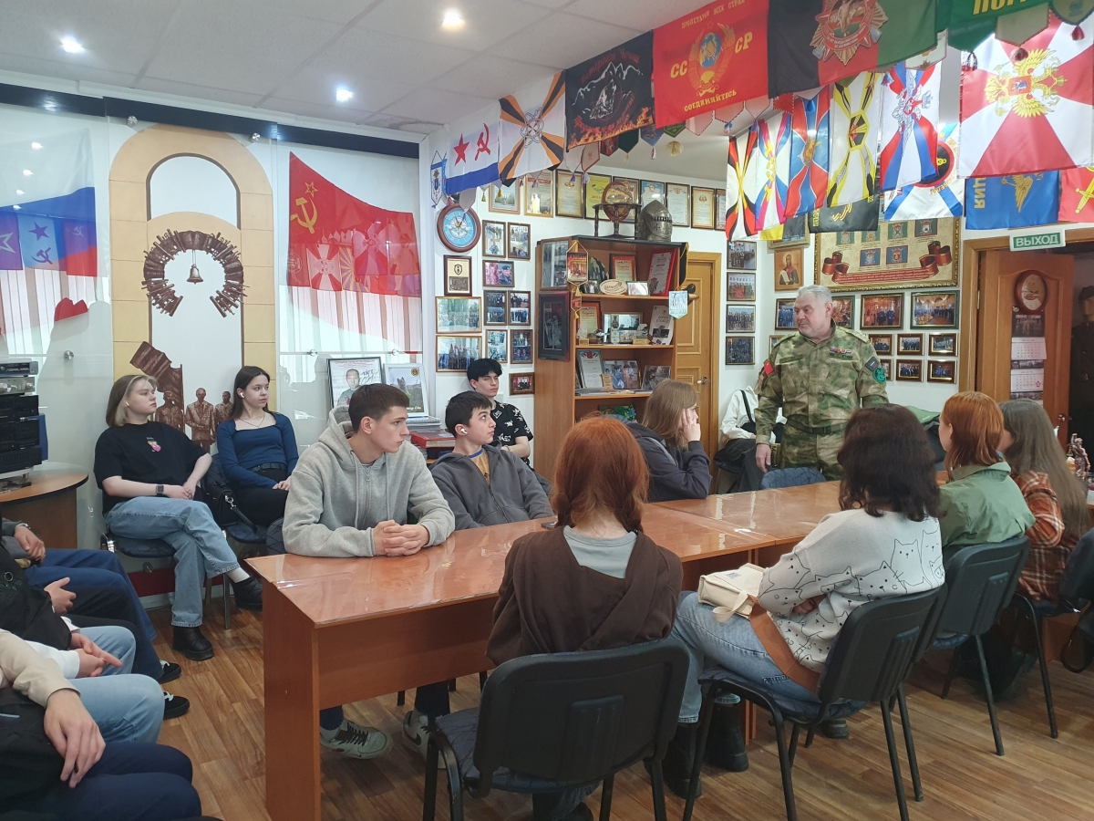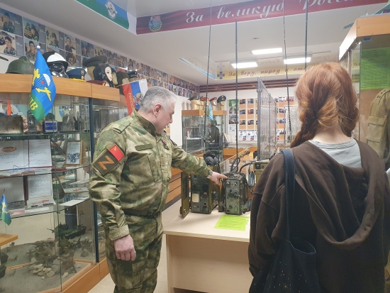 В преддверии Дня Победы студенты Усинского филиала УГТУ побывали в Музее боевой славы. Экскурсию по музею провел член Усинского Союза ветеранов Афганистана, Чечни и локальных войн Владимир Витюк. Студенты с большим интересом слушали рассказ экскурсовода о героическом прошлом своих предков, о мужестве современного поколения и познакомились с интересными экспонатами музея.